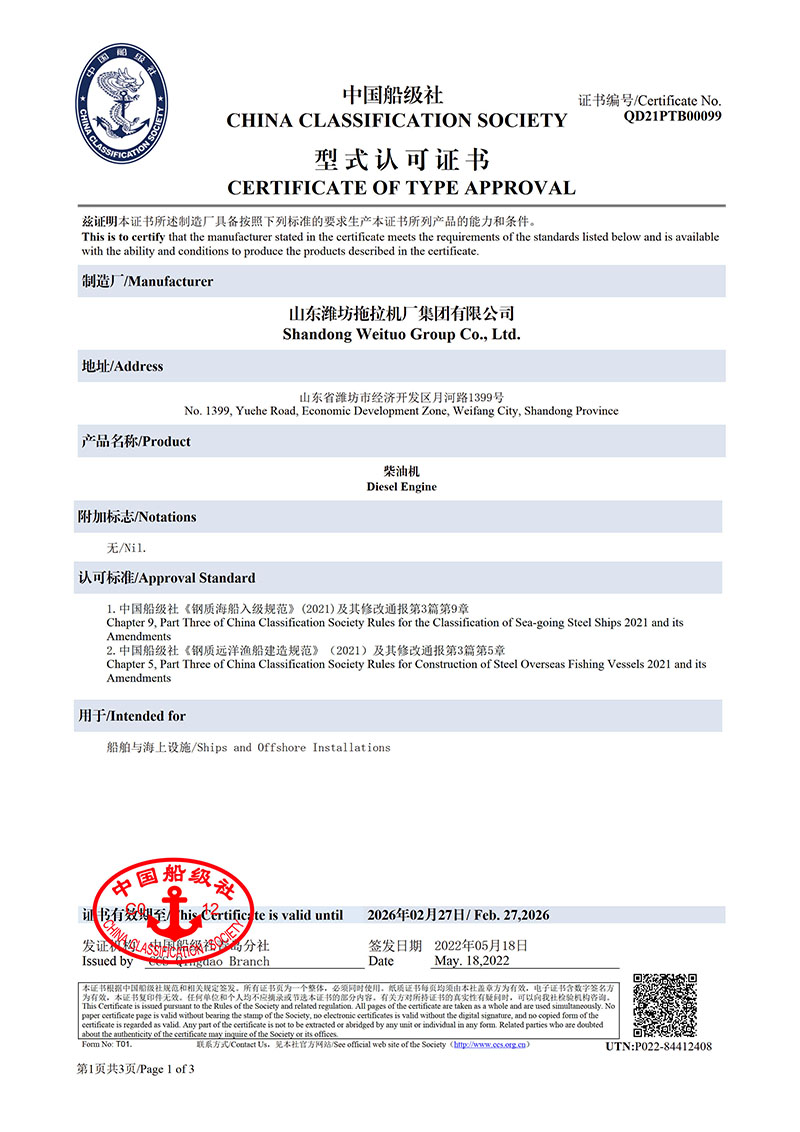 中國(guó)船級(jí)社形式認(rèn)可證書(2022年5月-2026年2月)