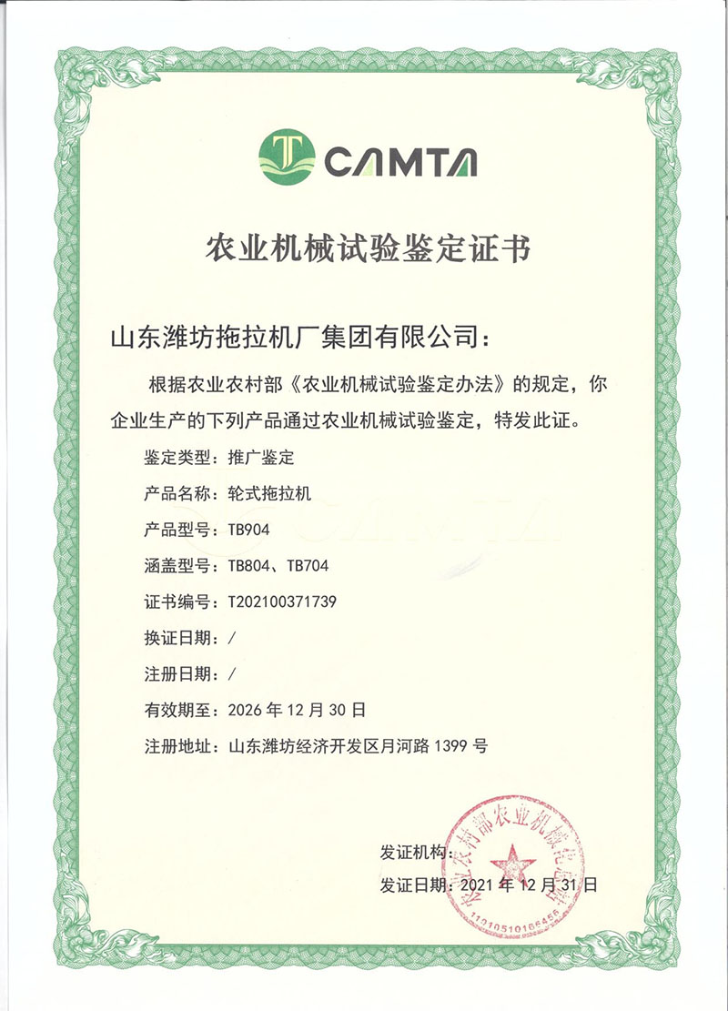 農(nóng)業(yè)機械推廣鑒定(2021年12月-2026年12月)