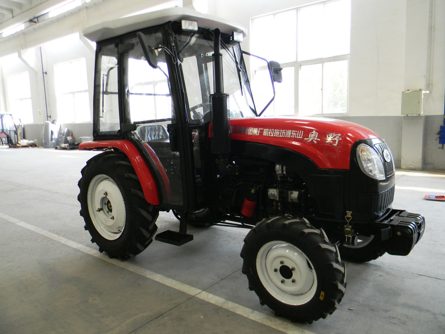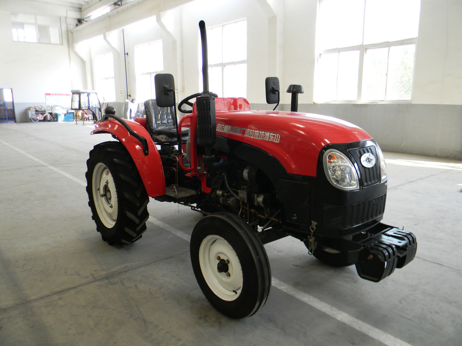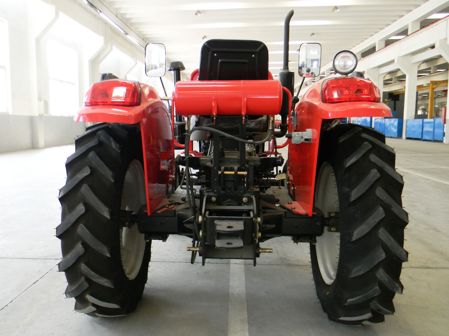 This series of products is the current domestic advanced performance horsepower four wheel drive tractor. The utility model has the advantages of strong matching power, high transmission efficiency, large traction force, low oil consumption rate, strong adaptability, compact structure, convenient use and maintenance, etc.. The gearbox adopts sliding gear meshing and set shifting, optional 2* (4+1) or 2* (4+4) gear gearbox, strong reliability, reasonable ratio; optional or double action clutch; the power output shaft is designed according to the national standard; adjustable wheel tread,power steering.